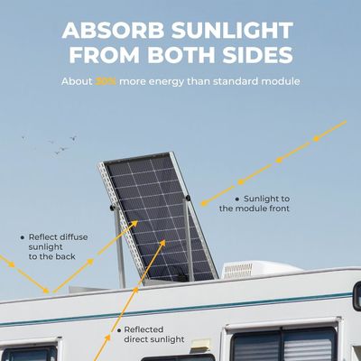 Karena matahari selalu bergerak sepanjang hari, mungkin perlu disesuaikan,panel surya bifacial bisa sangat baik dalam memecahkan masalah ini, tidak peduli bagaimana matahari bergerak, itu dapat menyerap sinar matahari.